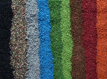 Az elmúlt években gyakran színezett formában is használják. A színezett SBR gumiőrlemény megakadályozza a szennyező anyagok kiszivárgását és a felforrósodástól is védelmet biztosít.